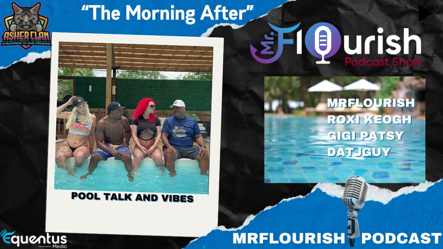 MrFlourish Podcast with guest Roxi Keogh, GiGi Patsy and DatJGuy took place pool side at a resort in Fort Lauderdale